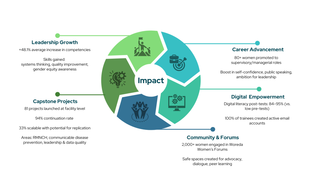Over the past months, the Healers to Leaders initiative has reached 15 woredas across Afar,  Amhara, Oromia, Sidama, and Somali regions. Our approach to leadership development is simple but powerful: build capacity, provide support, and create community.